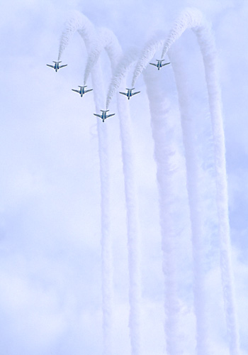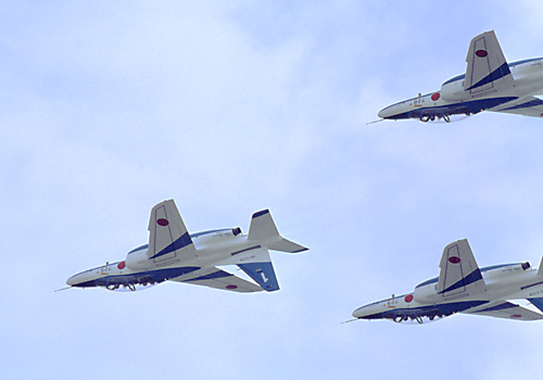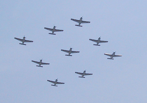 綺麗な隊列を組んで飛行。って、後尾機のプロペラがっ… |