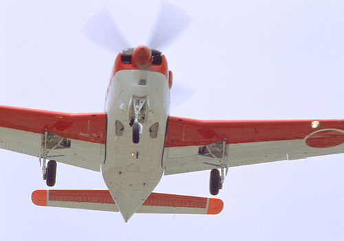 脚出しローパス中の操縦席付近。下方視界の良さが伺えます |