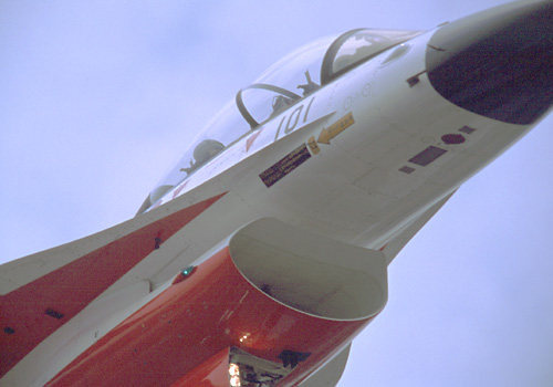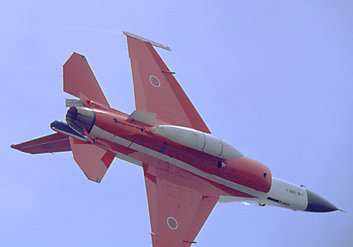 岐阜から飛来したF-2原型機のデモは去年に比べるとややマイルド |