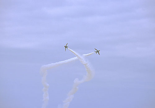 ソロ2機の交差科目「タッククロス」の並進交差 |