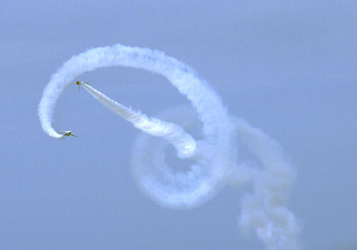 ソロ機が左右から横倒し状態で交差する「ナイフエッジ・パス」 |