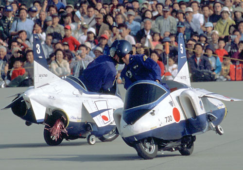 脚出しデモ。遠目には軽やかに出し入れされてる脚でも間近で見ると結構なパワーを感じます |