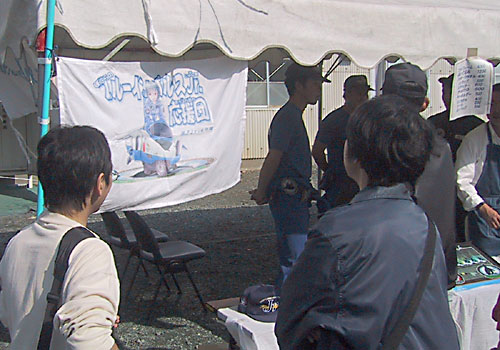 Jr.のグッズを売っていたテントに掲げられた応援団の団旗。絵は畏れ多くもわしが描かせて頂きました |