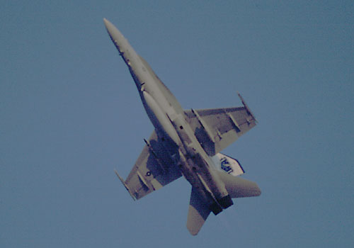 米海兵隊のスペシャルマーキング付きF/A-18が帰投時に見せたハイレートクライム |