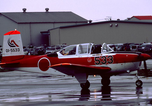 静浜が地元のT-3初等練習機。操縦桿を握るのは訓練教官 |