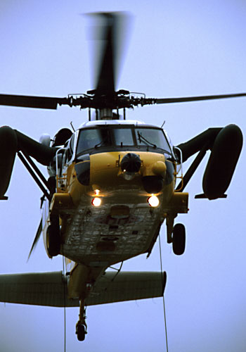 救難展示を行うUH-60。左右に張り出した増槽がチャームポイント |