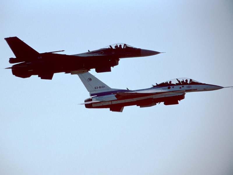 F-2の機動飛行。飛実団のデモはテンポが良く完成度が高いものでした |