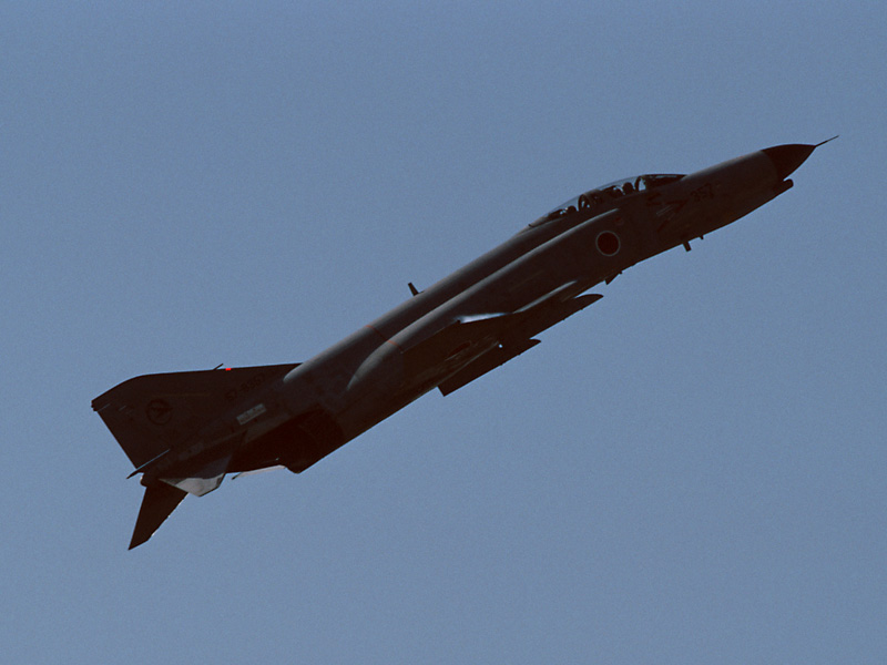 F-4EJ改。幾ら逆光とは言え殆ど真っ黒なのは露出の見当が甘いから |