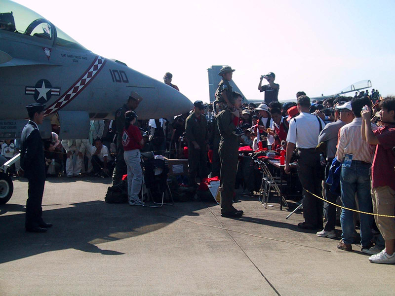 黒山の人だかり。商売上手な米国人。この機体はライノと呼ばれる新型、F/A-18F |