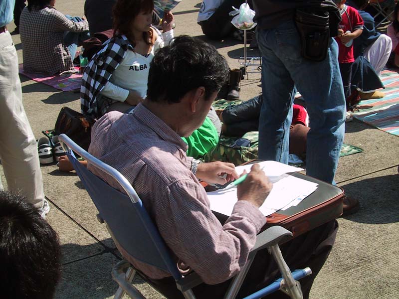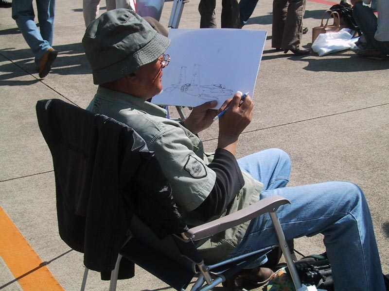 地上展示のF-15付近に陣取ってスケッチをするおっさん。こういう余裕のある楽しみ方も良いもんですな |