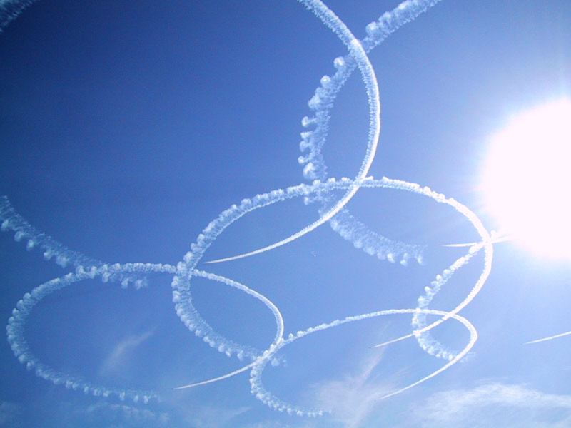 ダイアモンド編隊の#4が逆方向に一回転してから旋回する編隊に追いつく、レター・エイト |
