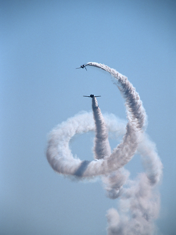 ハーフ・スローロールでタイトな編隊を組んで飛行する#5と#6 |