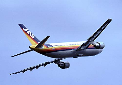 今や日航となったJAS エアバスA300が離陸 |