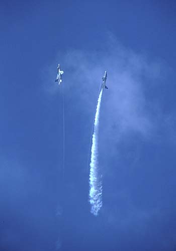 303飛行隊の名物デモ「ダブルドラゴン・トルネード」 |