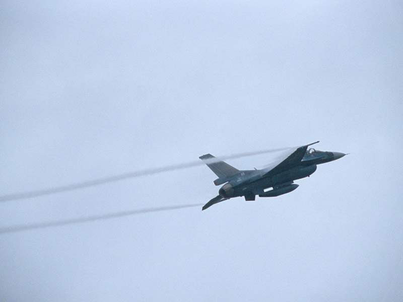 三沢から飛来の米空軍F-16デモンストレーションチームの機体。チームつってもデモは単機ですが |