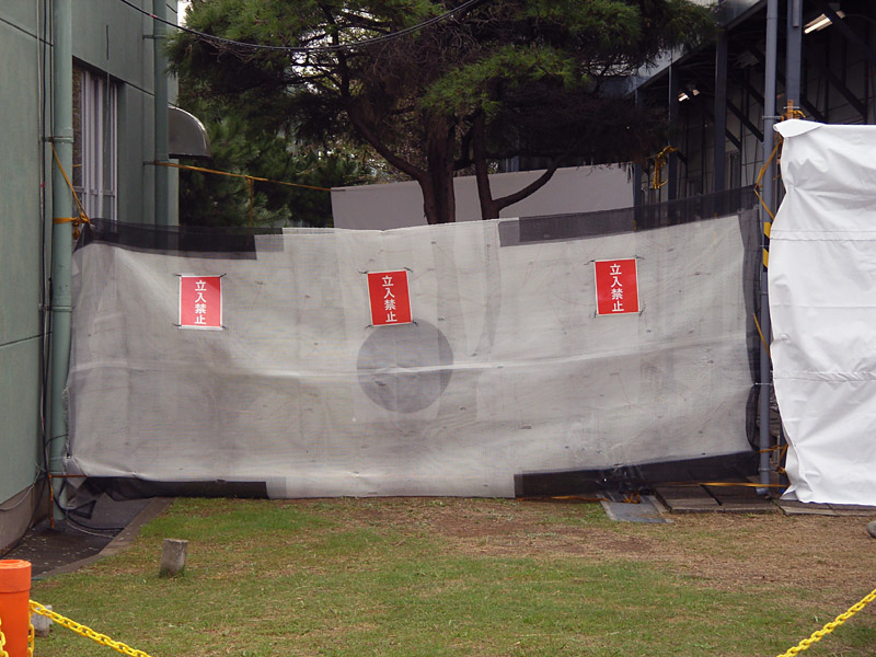 基地内の片隅 蜂の巣にされたターゲットの幕で通せんぼをしてました |
