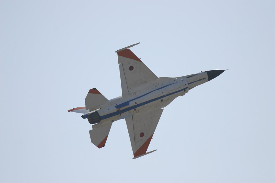 XF-2の単座型、試作2号機の腹。F-2は3機がデモフライトに参加 |