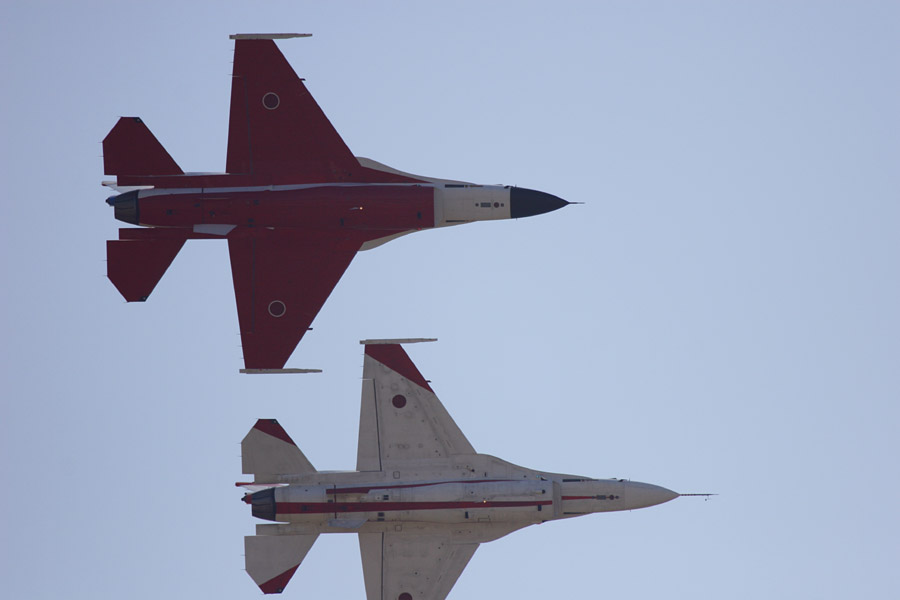F-15とF-2の編隊。 最新機材はシャッター半押しでピンが合うので楽ですなあ |