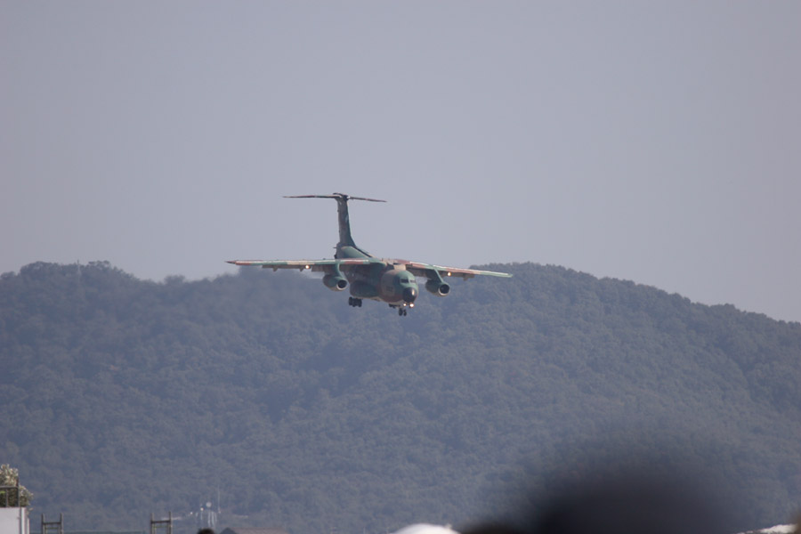 C-1の着陸進入。急角度の降下でSTOL性能を見せつけてました |