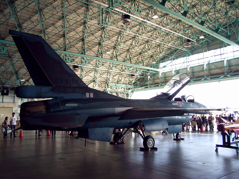 ハンガー内で装備品の展示に使われていたF-2 |