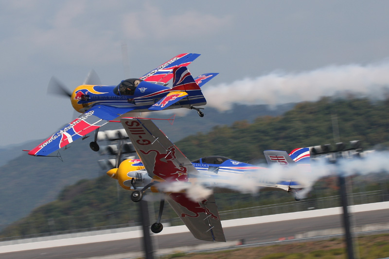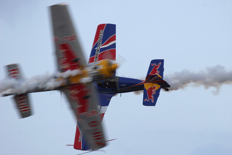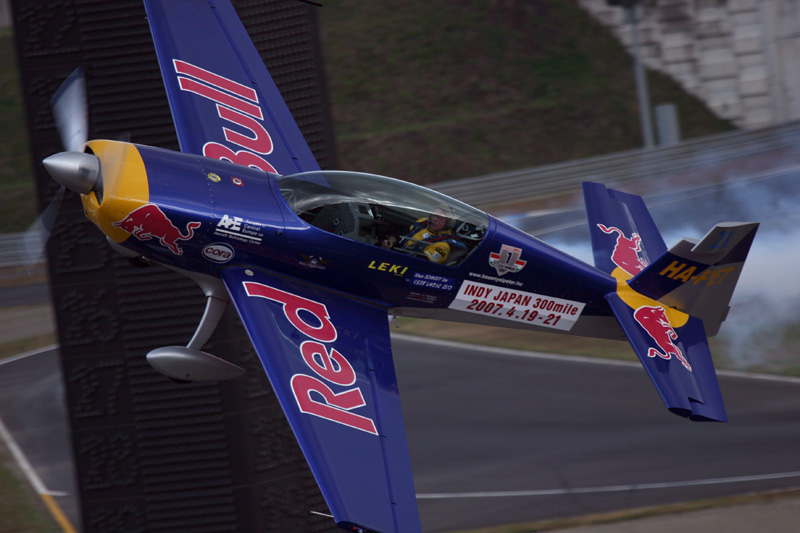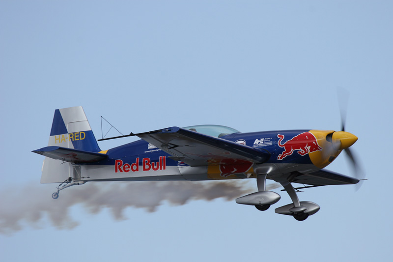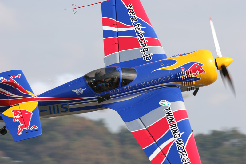 レッドブルカラーのExtra300S。ハンガリー人のピーター・ベゼネイ選手 |