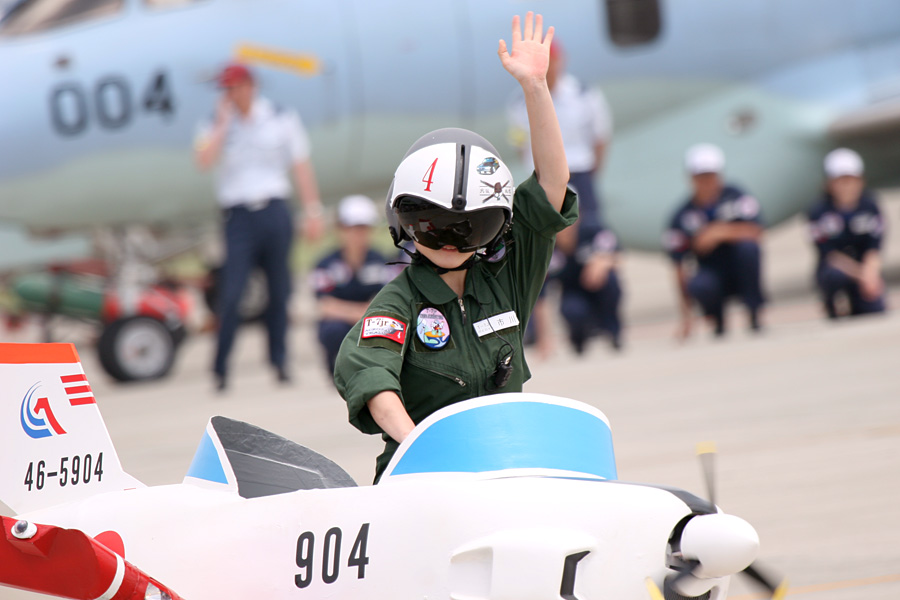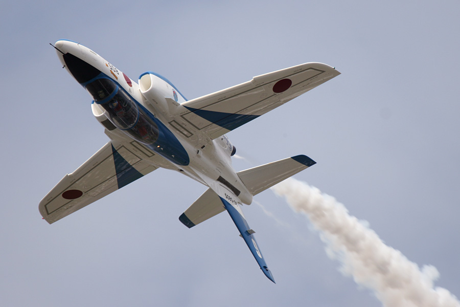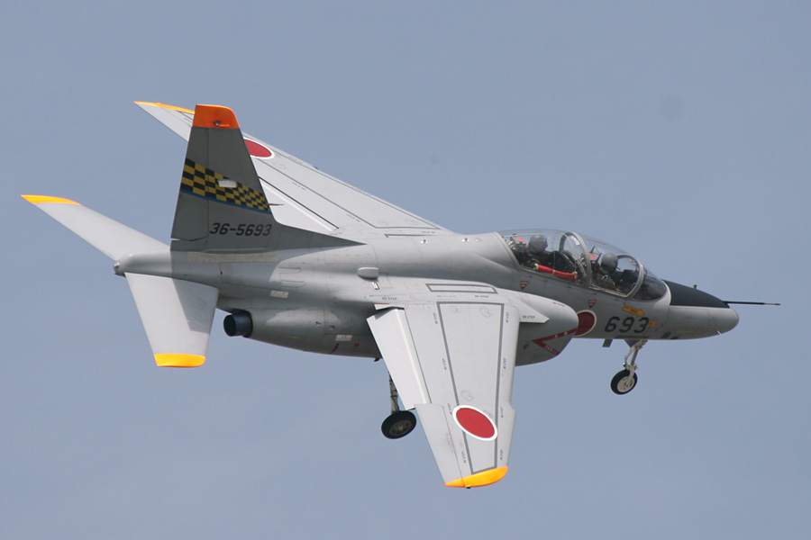すぐ隣の浜松基地から飛来したT-4中等練習機が見せていた脚出しローパスでの翼振り |