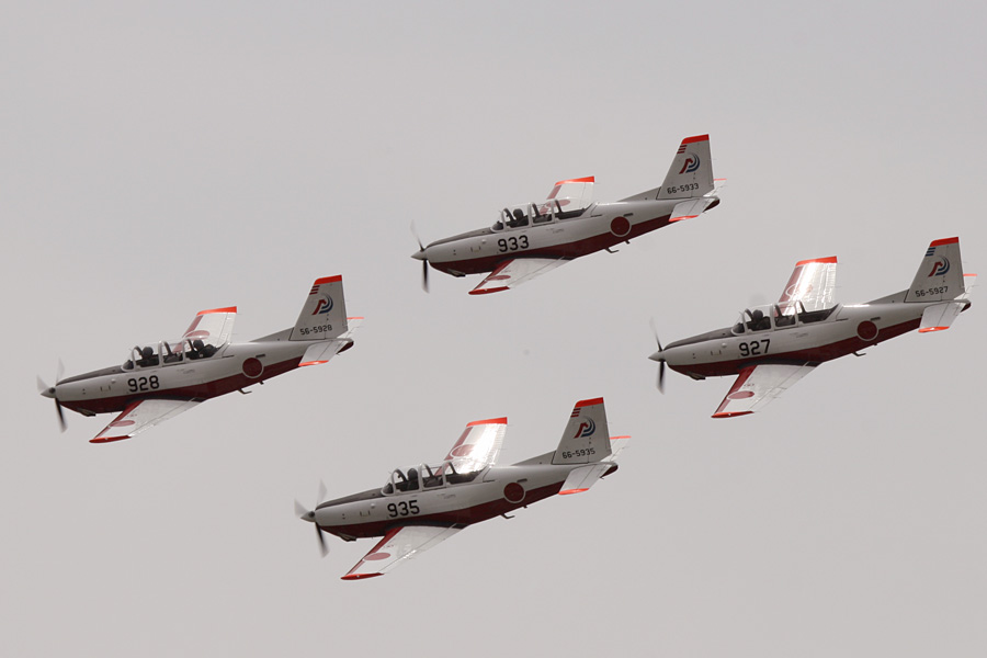 静浜航空祭の主菜であるT-7のデモ。当日は風が強かったので苦労しながら隊形の維持に努めている様子が良くわかりました |