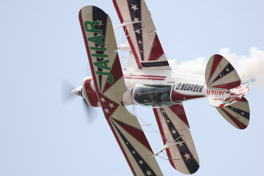 新生AirRockのPitts S-2Bが離陸。パイロットは師匠ロック岩崎氏の意志を受け継ぐサニー氏 |