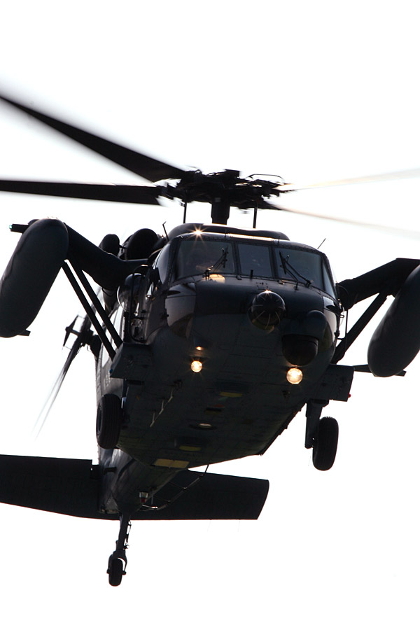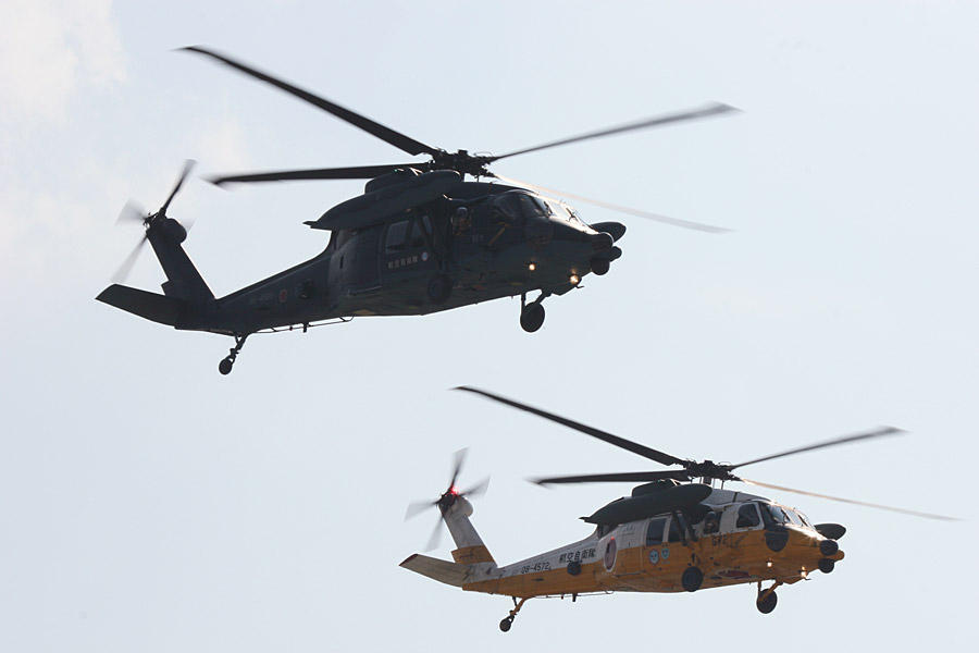 救難教育隊を擁する小牧。救難展示で編隊飛行するUH-60J |
