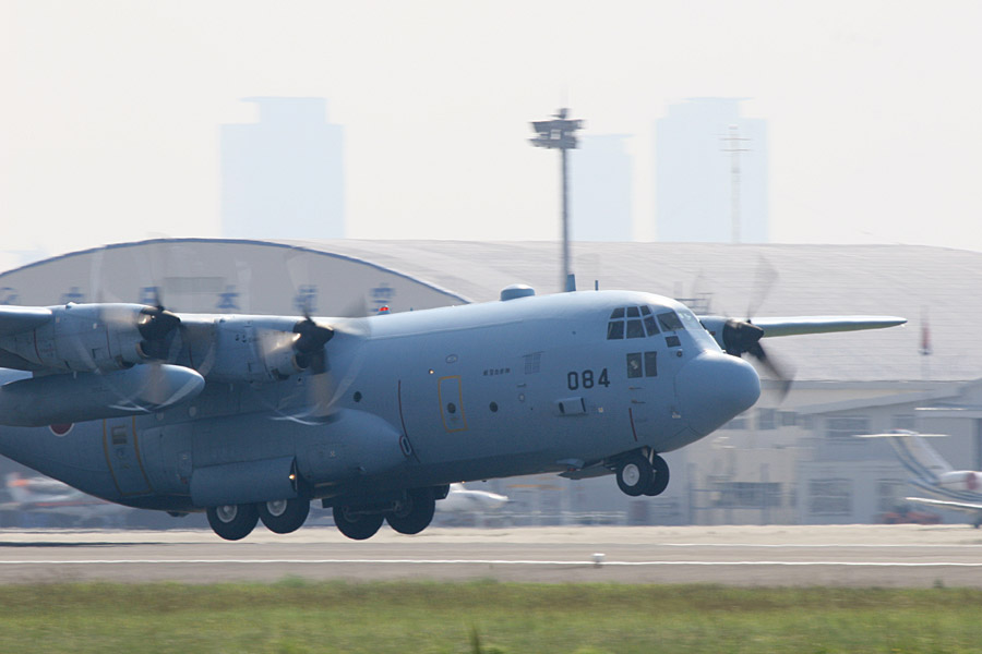 デモに向けて離陸するC-130H。小牧は人出が少ないので離着陸の場面が狙える訳ですな |
