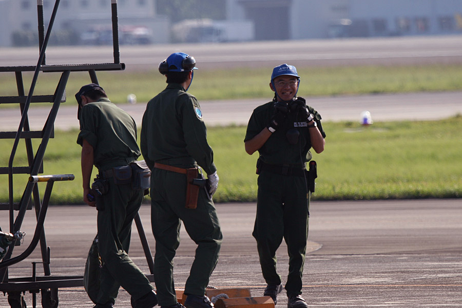 F-2を送り出して笑みをみせていた支援クルー |
