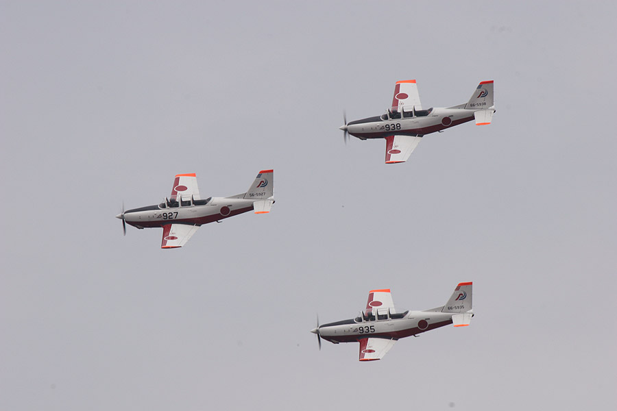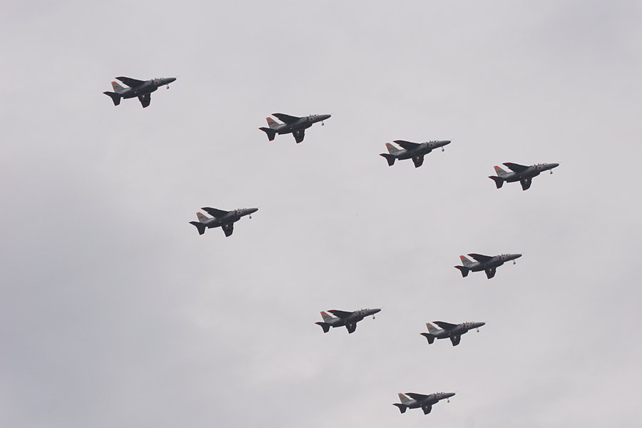 地元浜松の第1航空団が見せるT-4の9機編隊 |