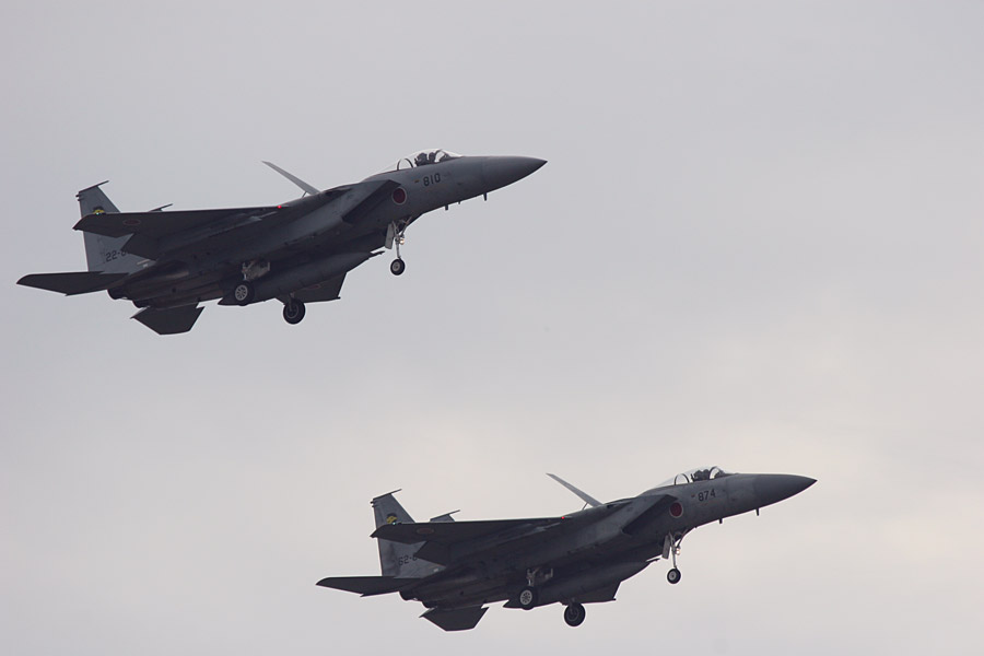 小松基地から飛んできた306飛行隊のF-15ペアがデモフライト |