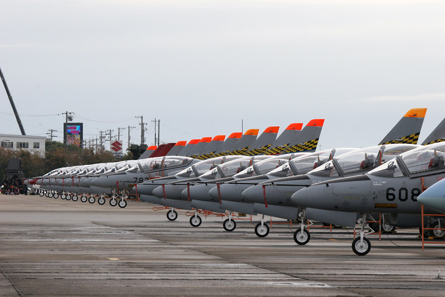浜松を本拠とする第1航空団。 第31飛行隊と第32飛行隊がT-4で飛行士の養成をやってます |