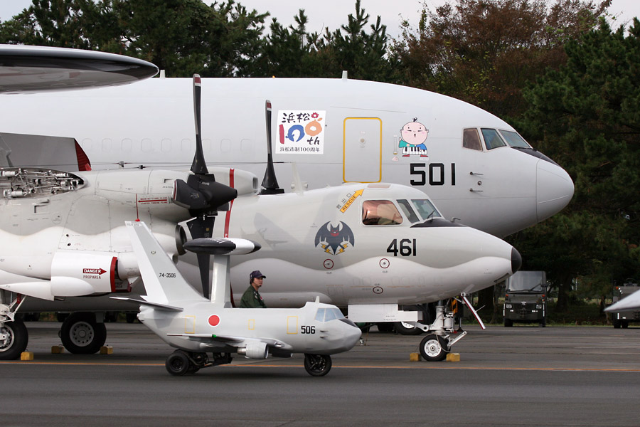 空自が装備する早期警戒機の揃い踏み。 E-2Cは三沢基地からの出張 |