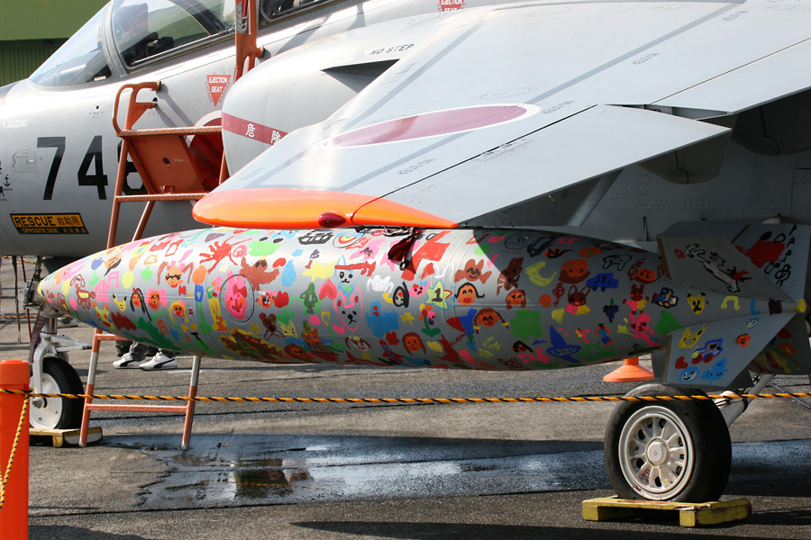 地上展示機されてた第32飛行隊のT-4。 増槽になにやら模様が描いてある |