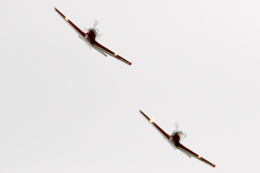 午後のデモに上がったT-4は16機でしたがこの2機だけは編隊着陸を実施 |