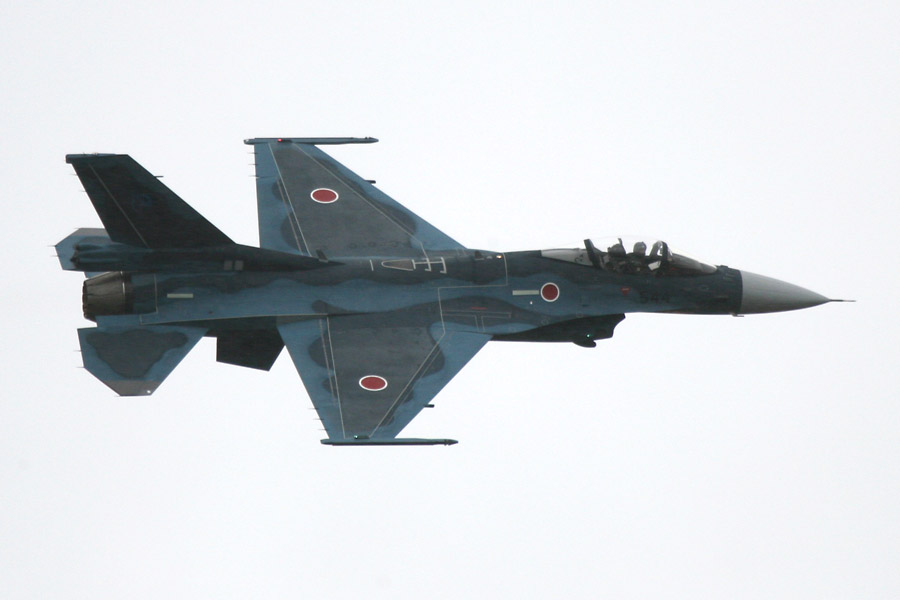その雨の中デモフライトを実施する岐阜基地飛行開発実験団所属のF-2A |