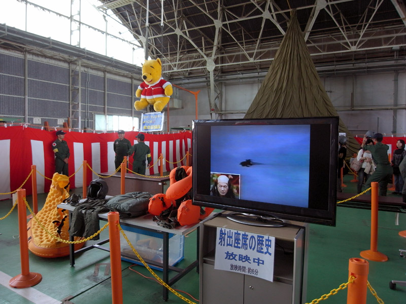 射出座席とその装備の展示。 説明ビデオがなんだか民放バラエティっぽいんですが… |