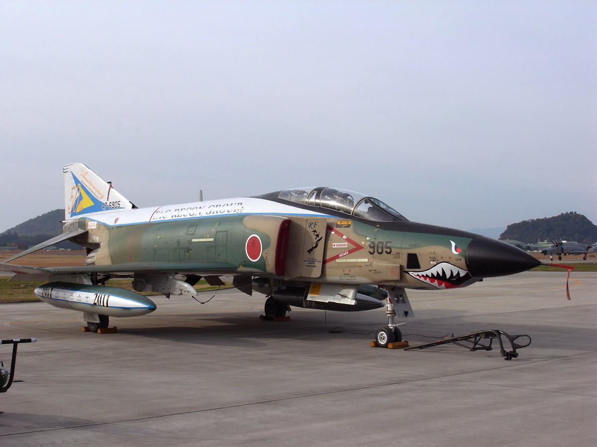 シャークマウス付のRF-4E。百里基地の偵察航空隊、第501飛行隊50周年記念塗装機 |
