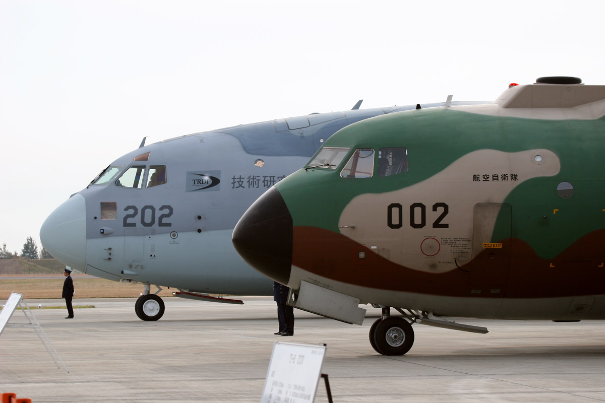 仲良く並ぶ国産輸送機の母娘。実は手前のC-1もXC-1の試作2号機 |