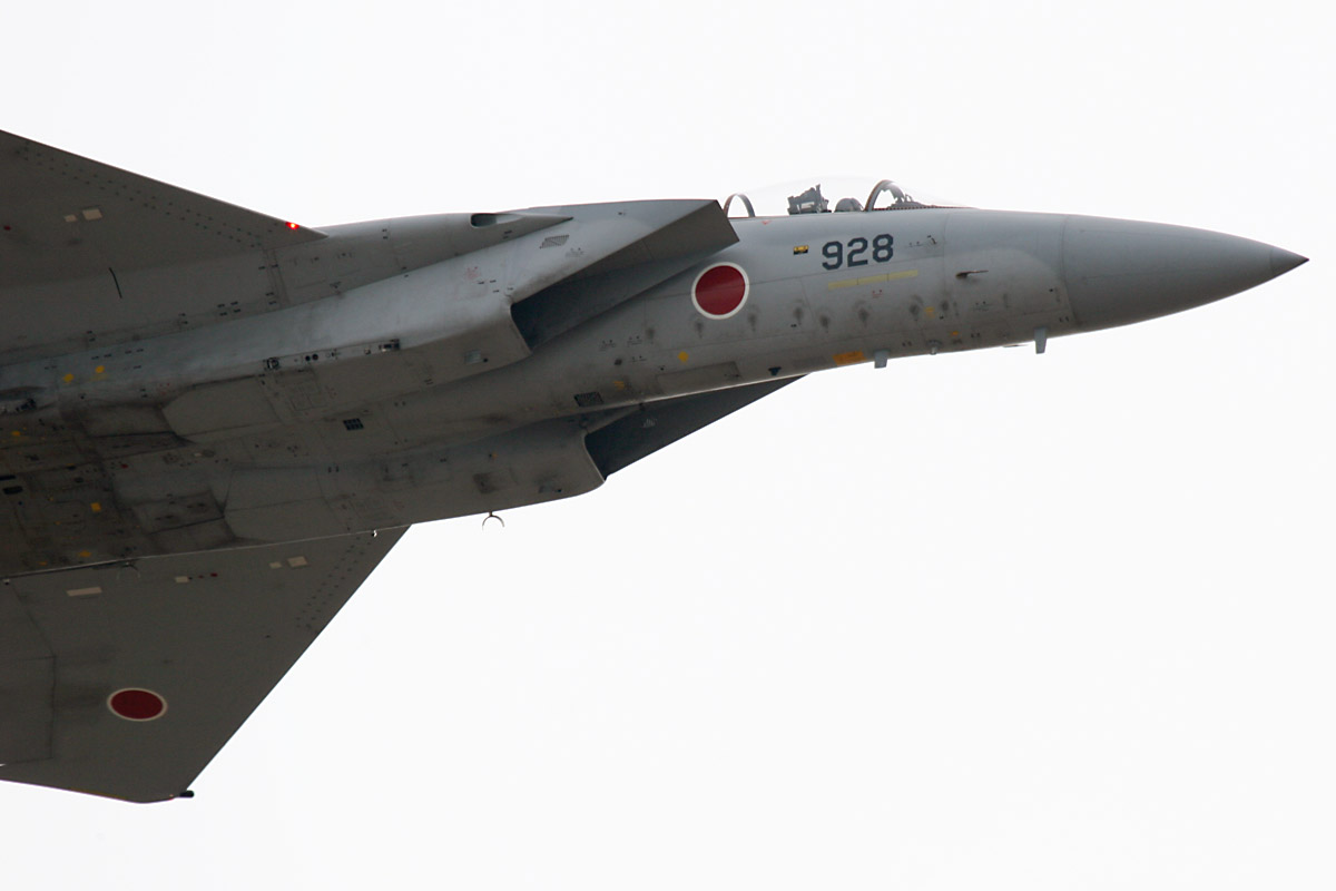 F-15Jの通過。薄雲があるから光量少ないけれど影側に光が回るのはちょっと助かる |