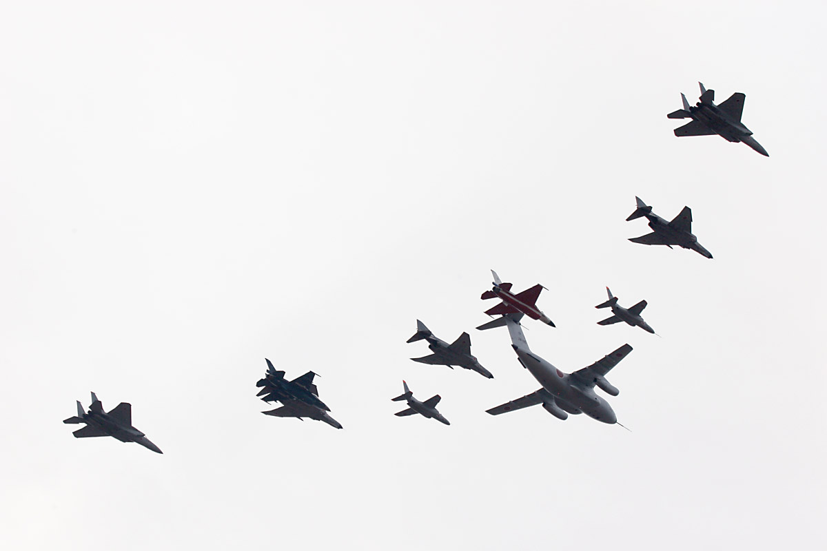 オポジット・コンティニアスロール。交差の時に機影が重なって見える場所は結構狭い |