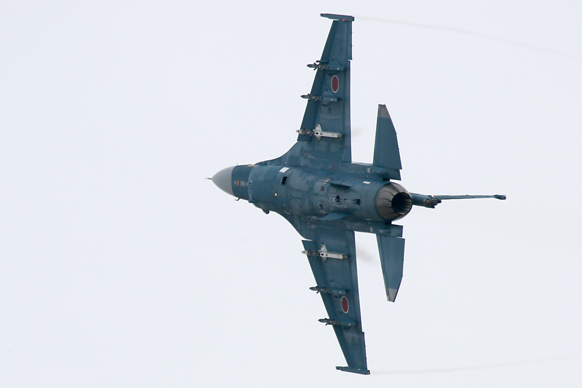 F-15Jの機動飛行。デモフライトでは客に背中を見せて間近を通過する機会って少ないんですよ |