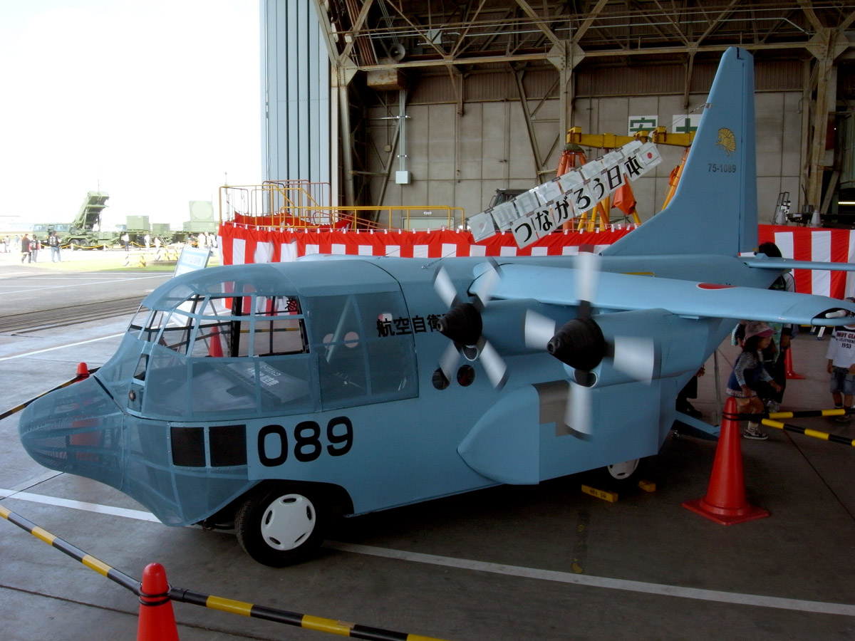 小牧名物のC-130jr. デモフライトは出来なくてもプロペラは回せます |