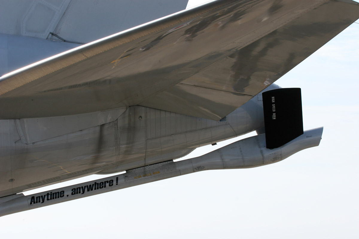 KC-767の尻に付いてるフライングブームのクローズアップ。 「いつでもどこでも」 |