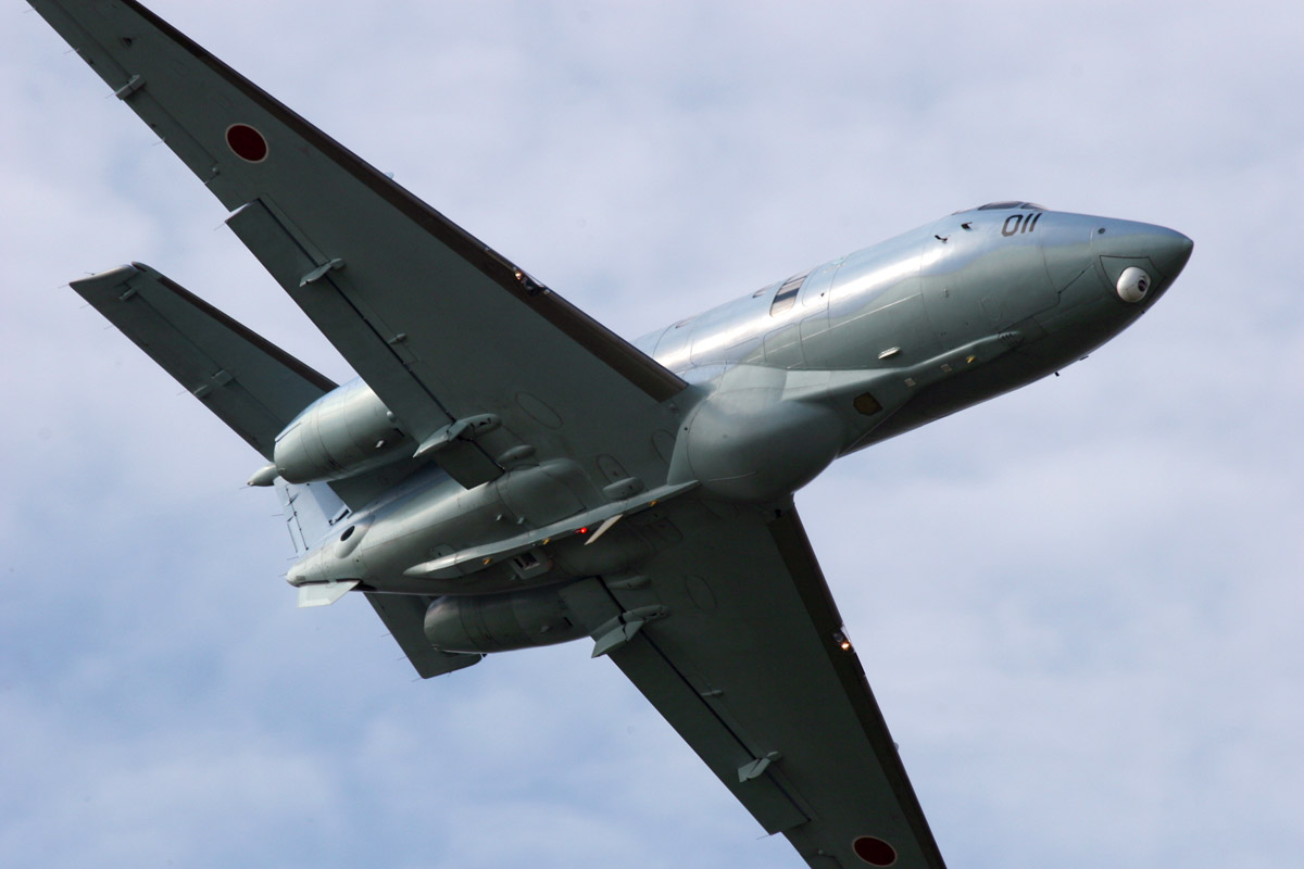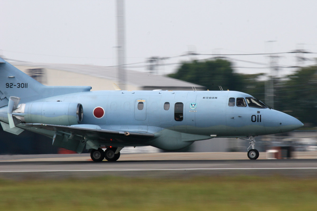 救難教育隊の救難デモで飛ぶU-125A。機首下面にぶら下がってるのは収納式の赤外線暗視装置 |
