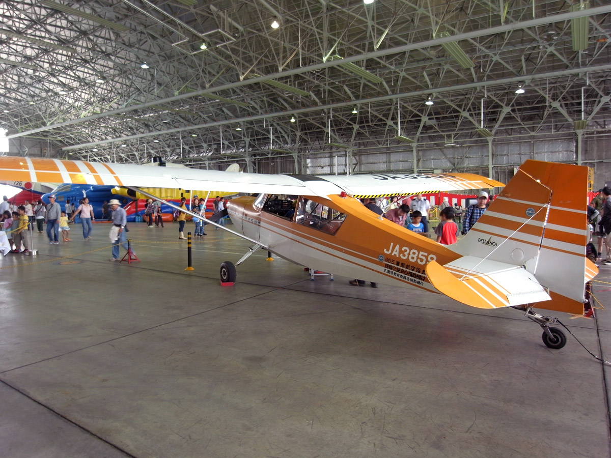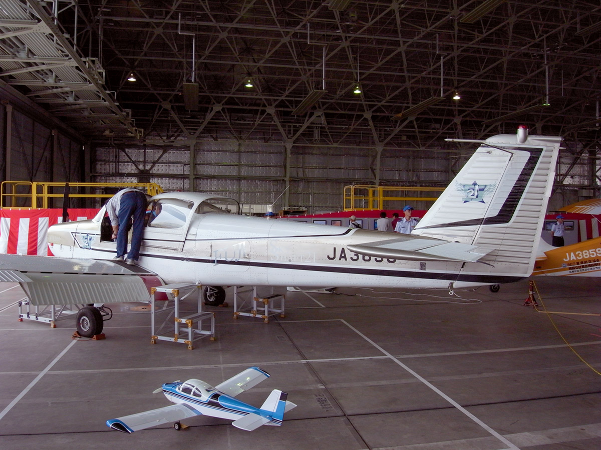 ハンガー内に展示されていた民間機、三重県航空協会のベランカ7G-CBC。 グライダーの曳航に使われているそうな |