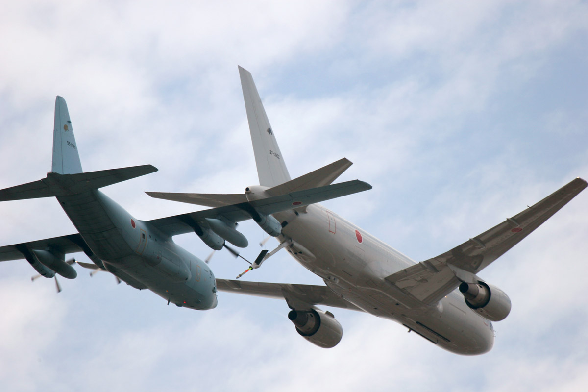 第404飛行隊の空中給油機、KC-767。 2機編隊でのデモは本邦初公開 |