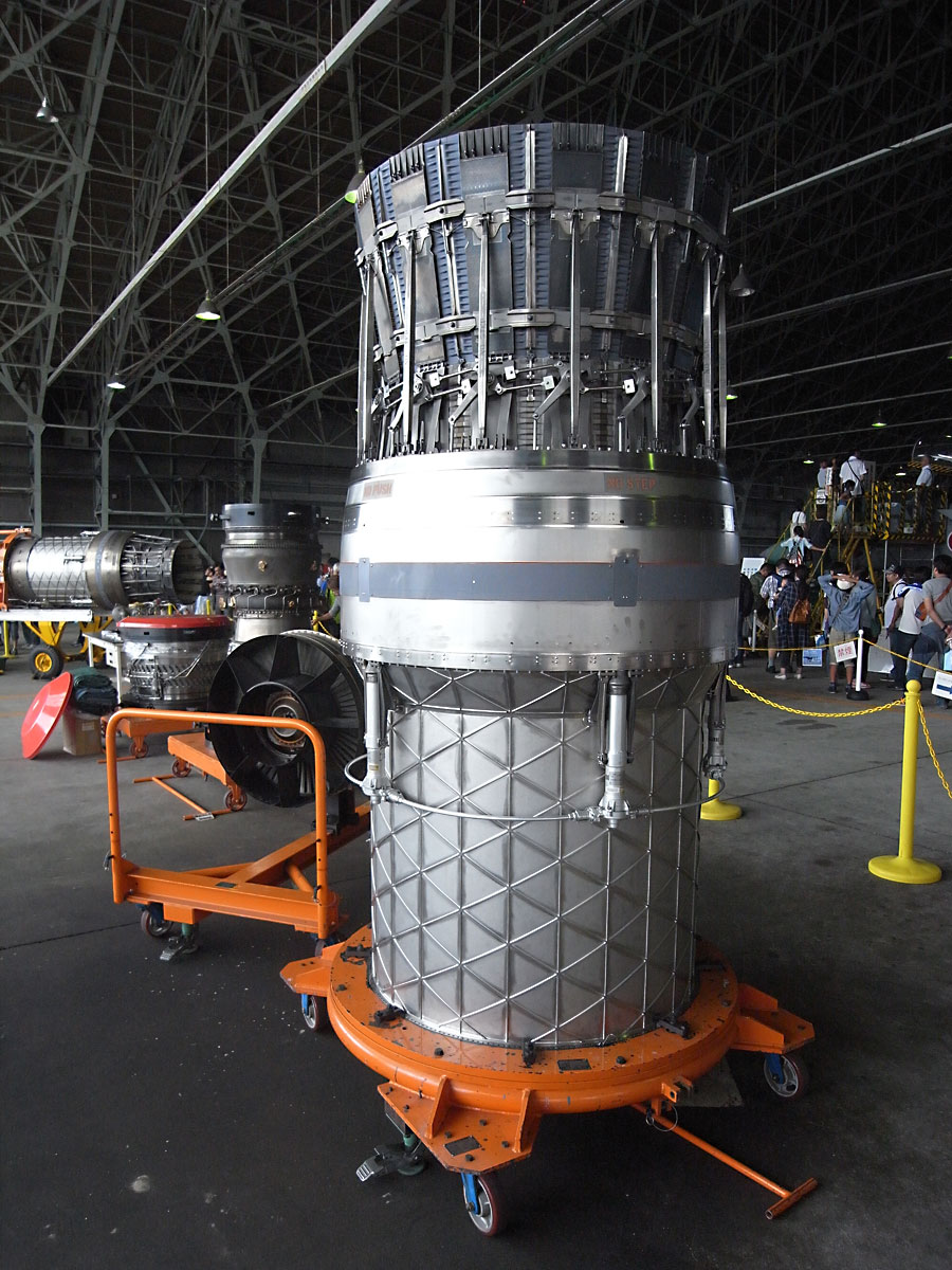F-15用のF100-IHI-220Eエンジン。セクションごとに分かれた状態での展示が仲々イカす |